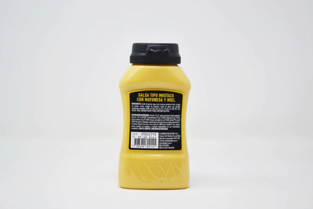 Ingredientes: Aceite de girasol, agua, miel, mostaza, jarabe de maíz, vinagre de alcohol, azúcar, viangre de manzana, huevo en polvo, sal, almidón modificado, pimentón.